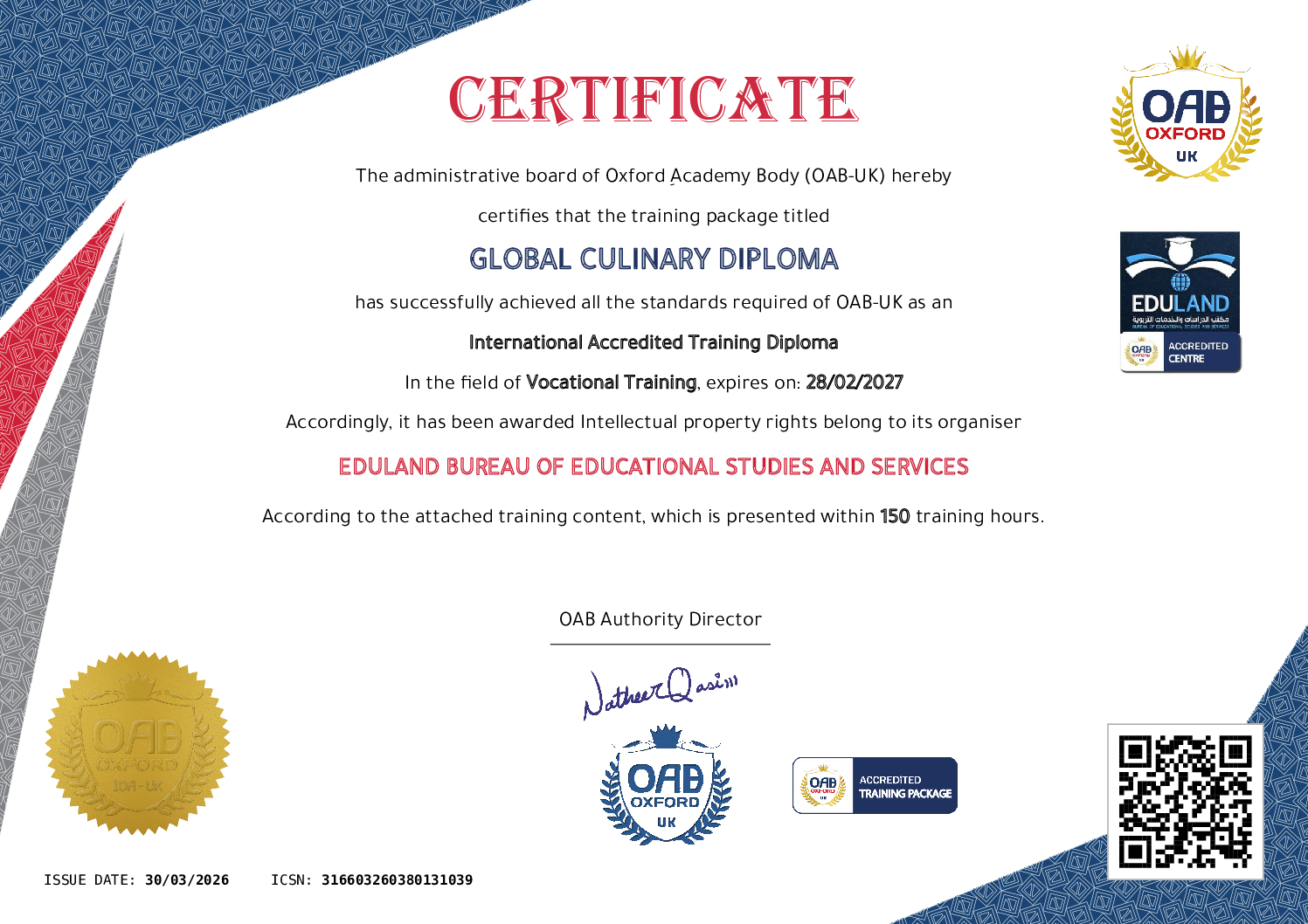 This certificate confirms that the training package (programme/course) has achieved all the standards OAB-UK requires for certified training programmes. The organiser (training centre/independent trainer) has intellectual property rights to this training package in the specific training field. The organiser has the right to use the logo of the internationally certified training package in ads and request that international certificates be issued to participants in the Certified training programme. This certificate validates your learning and opens doors to professional growth and advancement.